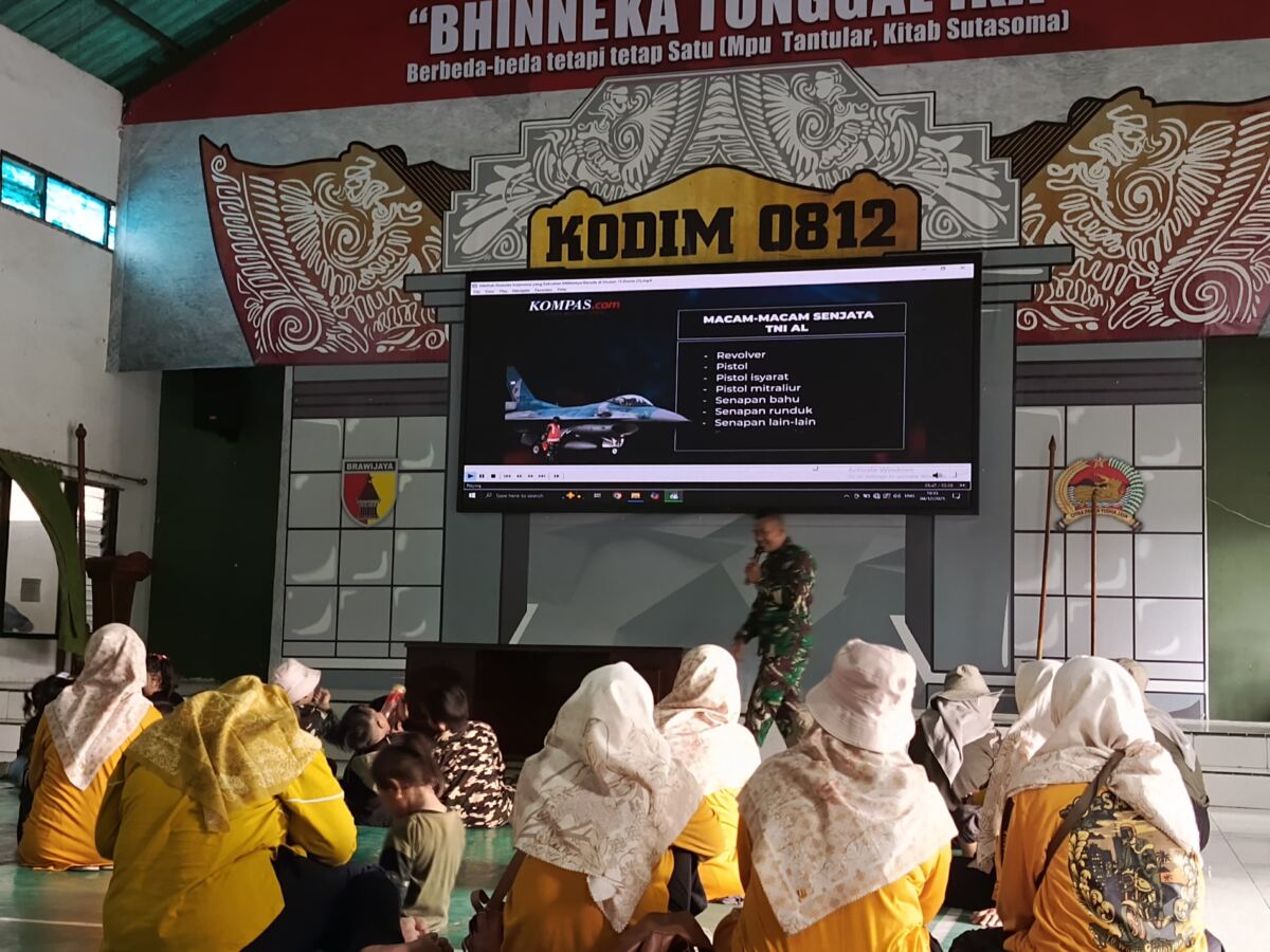 Kedatangan rombongan siswa yang didampingi oleh para guru dan wali murid ini disambut hangat oleh anggota Kodim 0812/Lamongan. Suasana kekeluargaan sangat terasa ketika anggota TNI menyapa anak-anak dengan ramah, menghilangkan kesan “seram” yang mungkin dibayangkan oleh anak-anak sebelumnya.