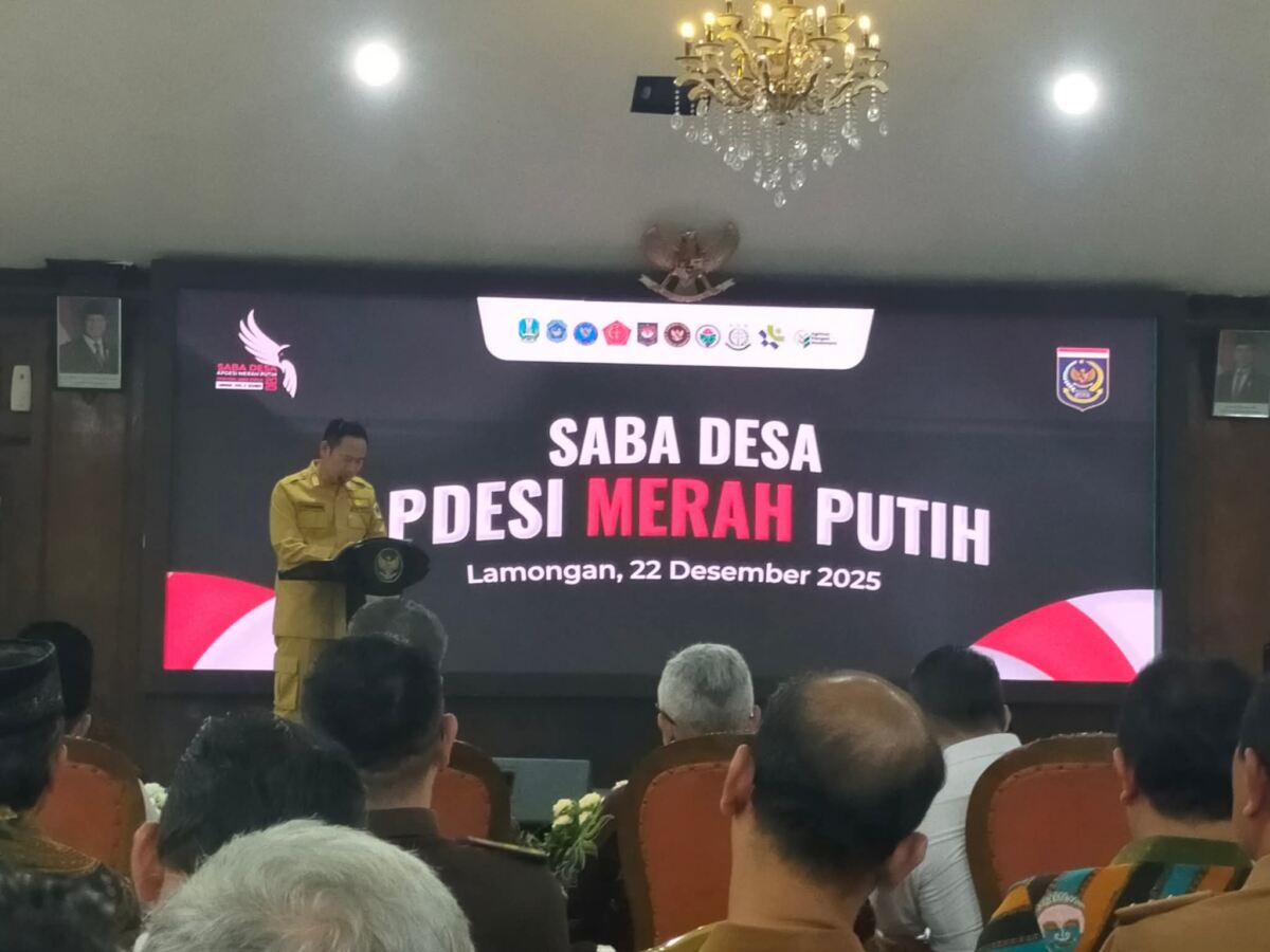 Kabar1lamongan.com – Pagi ini ada Pengukuhan Pengurus Kabupaten Asosiasi Pemerintah Desa Merah Putih di pendopo Kabupaten Lamongan. Asosiasi ini menjadi sangat strategis kalau bisa digerakkan dengan baik untuk mengawal dan menggerakkan program-program pemerintah pusat. Senin,(22/12/2025).