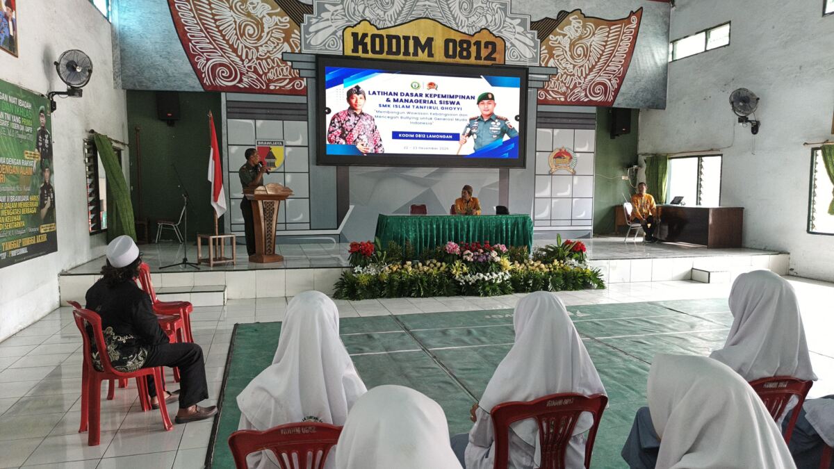 Tingkatkan Jiwa Kepemimpinan Siswa, Kodim 0812/Lamongan Berikan Pembekalan LDKMS kepada Santri SMK Islam Tanfirul Ghoyyi.