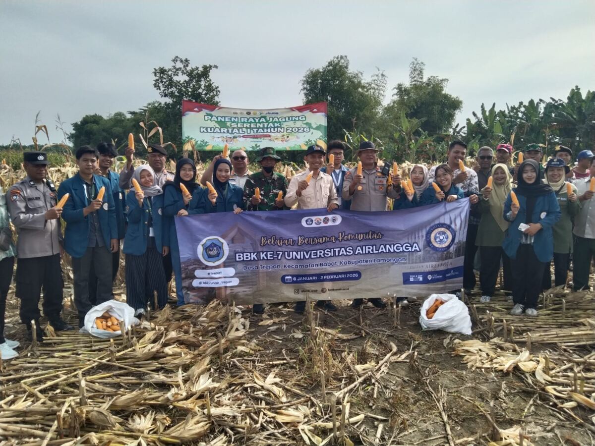Koramil 0812/10 Babat Bersama Muspika dan Mahasiswa KKN Unair Gelar Panen Raya Jagung di Desa Trepan