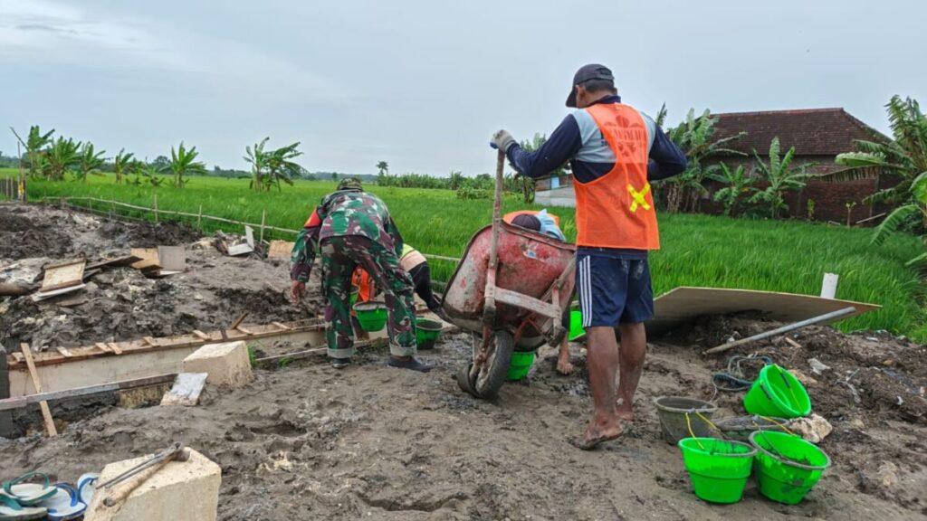 Babinsa Tikung Turun Tangan Bantu Pengecoran Koperasi Desa Bakalanpule, Upaya Dukung Program Pemerintah.